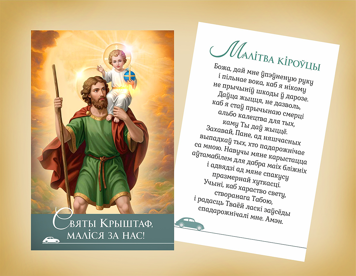 Існуе легенда, згодна з якой святы Крыштаф перанёс маленькага Езуса на сваіх плячах праз рэчку. Таму ў каталіцкім Касцёле гэты святы традыцыйна лічыцца заступнікам усіх кіроўцаў. Сапраўды, варта маліцца перад пачаткам кожнага нашага вялікага ці малога падарожжа: каб наш шлях быў бяспечным, згодным з Божай воляй, і каб кожны наш крок быў толькі на Божую хвалу.